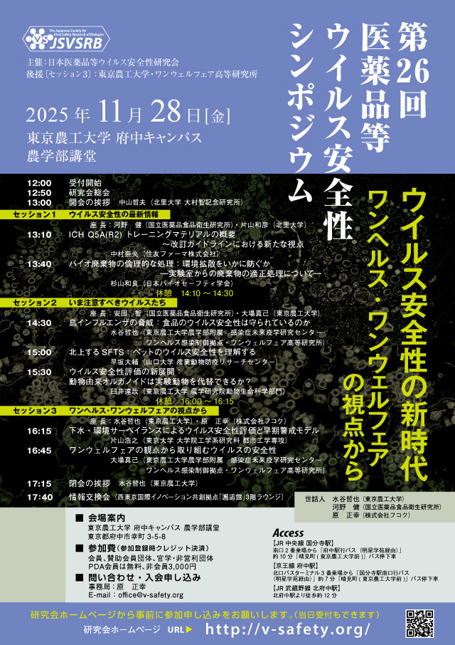 第26回医薬品等ウイルス安全性シンポジウム ウイルス安全性の新時代:ワンヘルス・ワンウェルフェアの視点から